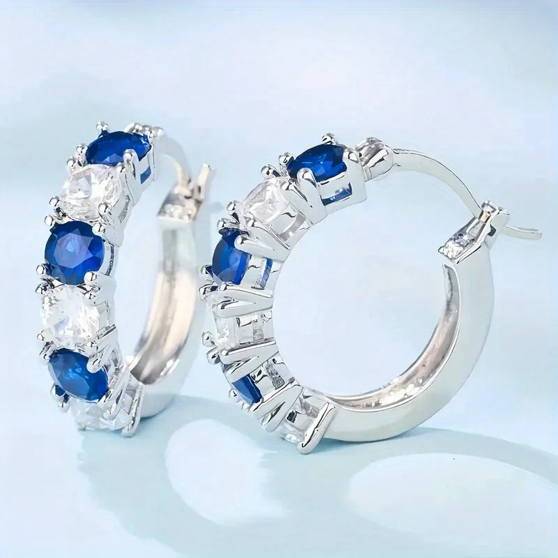 أقراط نسائية من الفضة عيار 925 - مرصعة بأحجار كريمة زرقاء