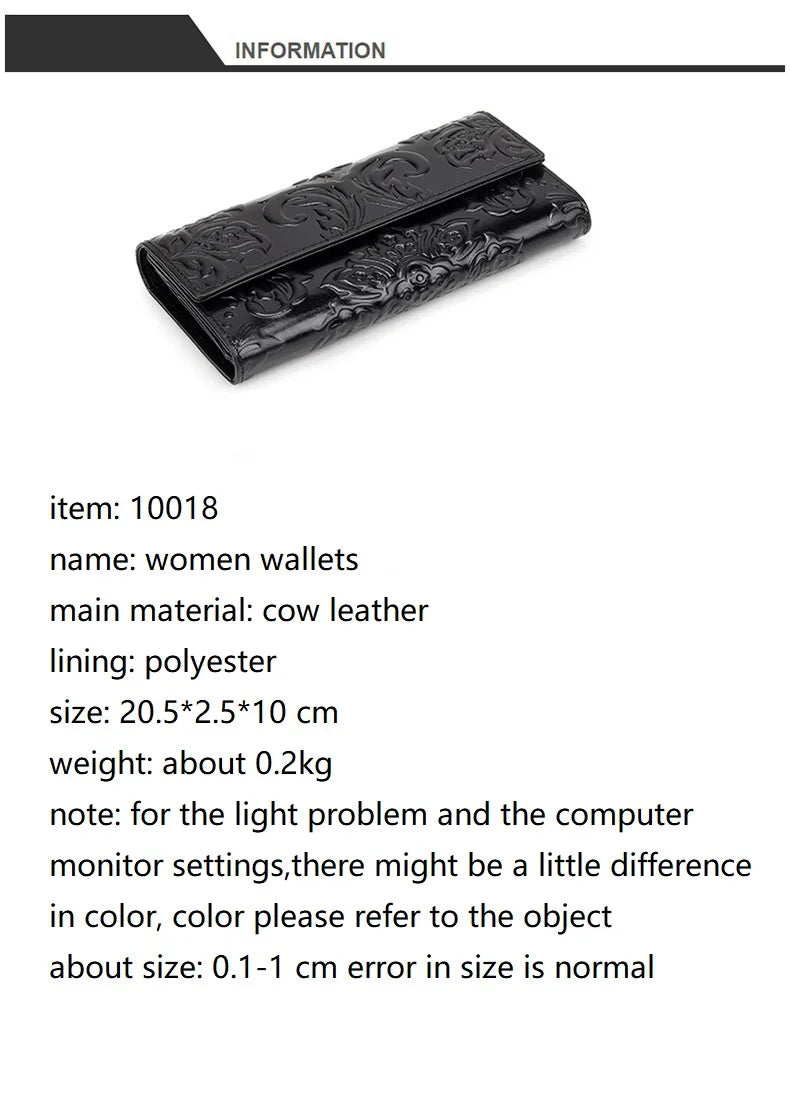 Women 100% Genuine Leather Wallet First Layer Cow Leather Purse Lucky Flower Pattern Real Cowhide Card Holder Clutch